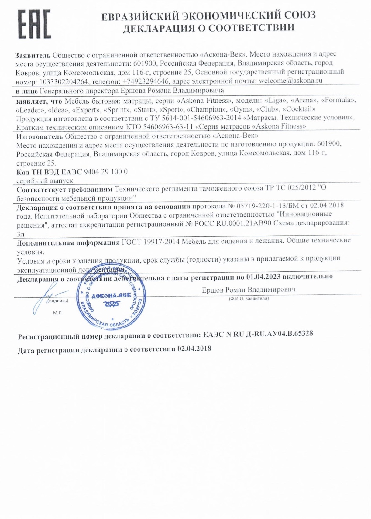 - Продукция имеет сертификат соответствия